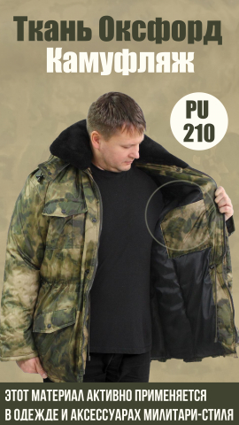 Ткань Оксфорд 210 D WR/PU 78+/-5гр.м2 рул 100м кмф